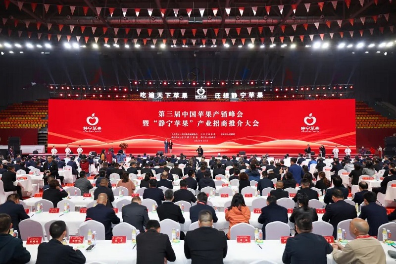 10月16日上午,由中國果品流通協(xié)會、中共平?jīng)鍪形⑵經(jīng)鍪腥嗣裾鬓k的第三屆中國蘋果產(chǎn)銷峰會暨“靜寧蘋果”產(chǎn)業(yè)高質(zhì)量發(fā)展招商推介大會在靜寧縣開幕,大會以“科技賦能、品牌驅(qū)動、全鏈升級、產(chǎn)業(yè)振興”為主題,包括主題展覽、“靜寧蘋果”產(chǎn)業(yè)高質(zhì)量發(fā)展對話、“百名果商主播”產(chǎn)地直采等系列活動。